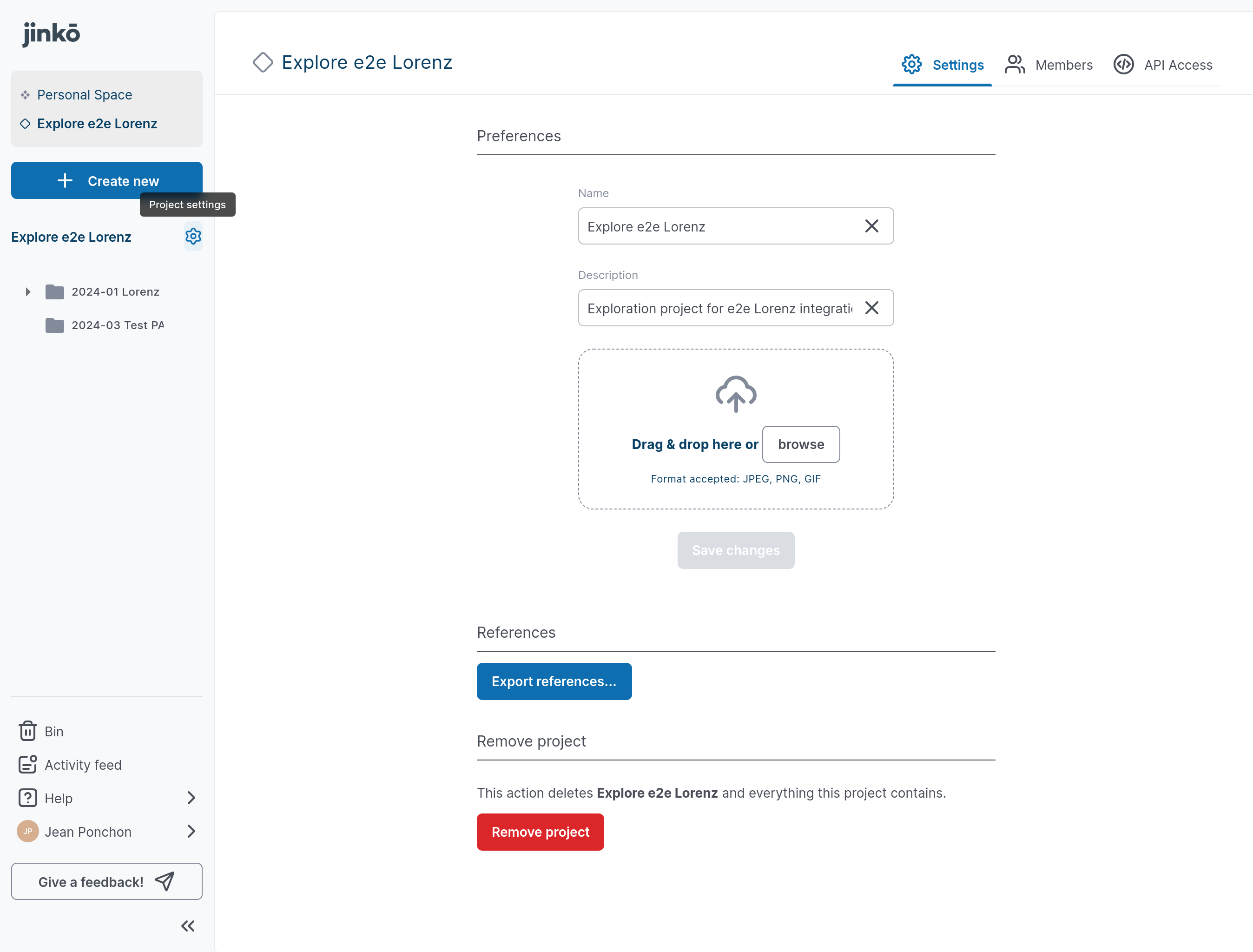 - Click on the project setting wheel next to the project name