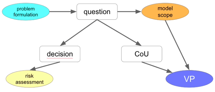An adapted definition of a model’s CoU (originally defined in the V&V40 [1] framework for Computational Model validation) with regard to mechanistic modeling in drug development (originally in physiologically based pharmacokinetic models, PBPK), has been published by Kuemmel et al.[2] The authors wrote that the CoU describes “how the model will be used to address the question of interest, i.e. the specific role and scope of the model”. Further, “ambiguity in the question of interest and COU can result in (i) reluctance to accept modeling and simulation in a given drug development or regulatory review scenario or (ii) undesirably protracted dialogue between drug developers and regulators on the data requirements needed to establish model credibility. It is, therefore, critical to unambiguously and explicitly state the question of interest and how the proposed modeling and simulation approach will address it”.