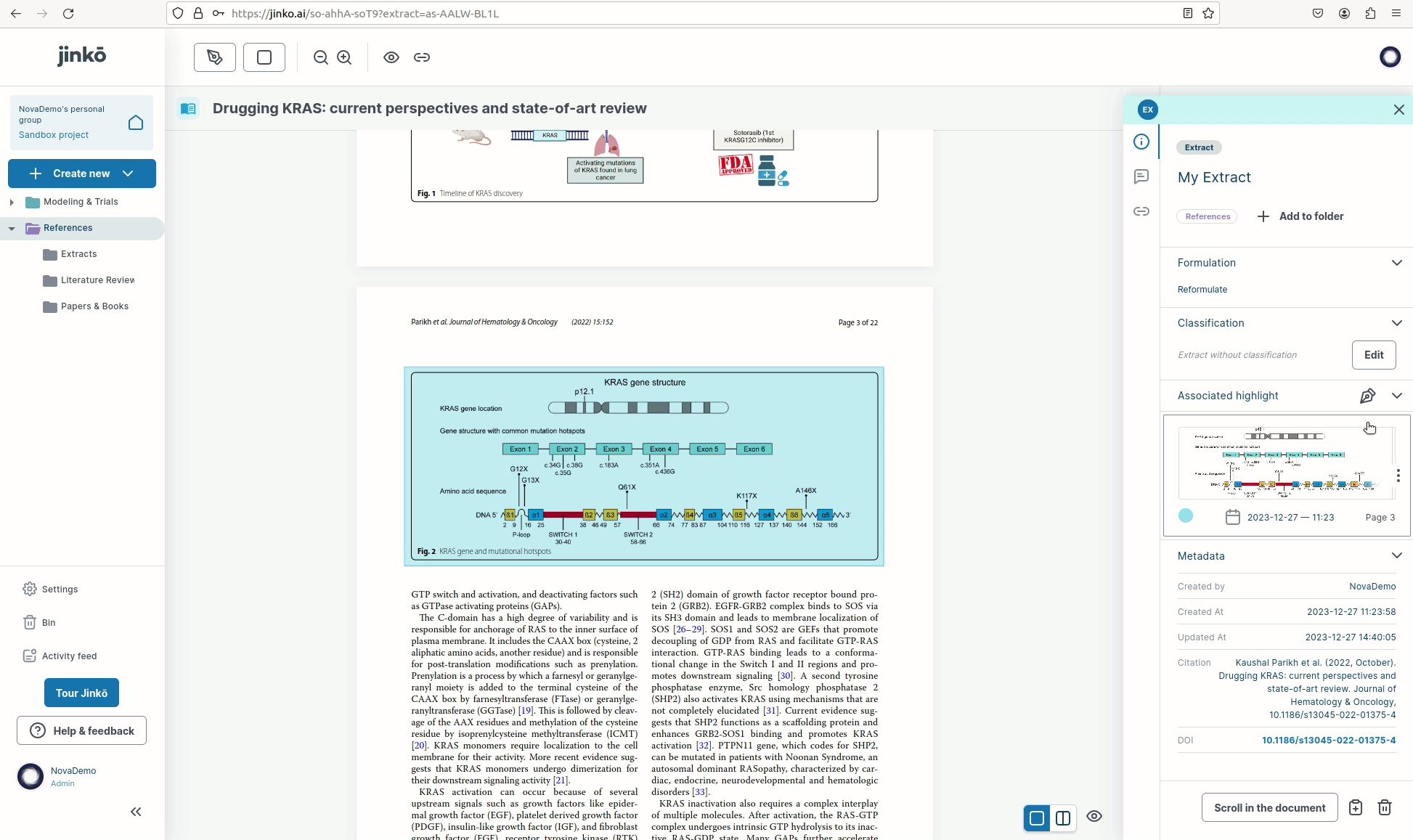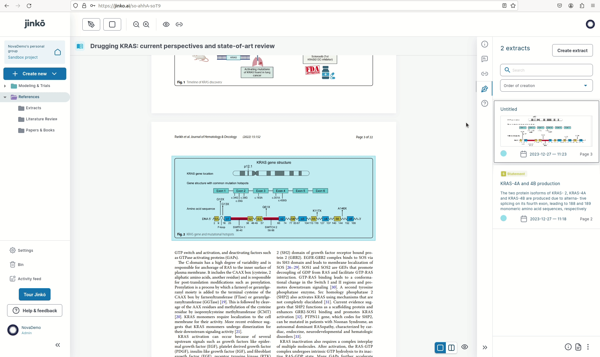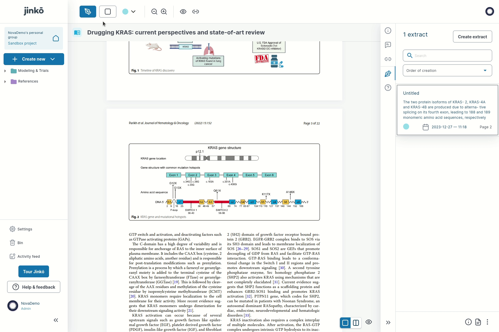 You are now able to review your references and create what is called in jinkō 'extracts', which are pinpointed pieces of knowledge relevant for a given research, that can then be references throughout your project, in documentations and models notably.