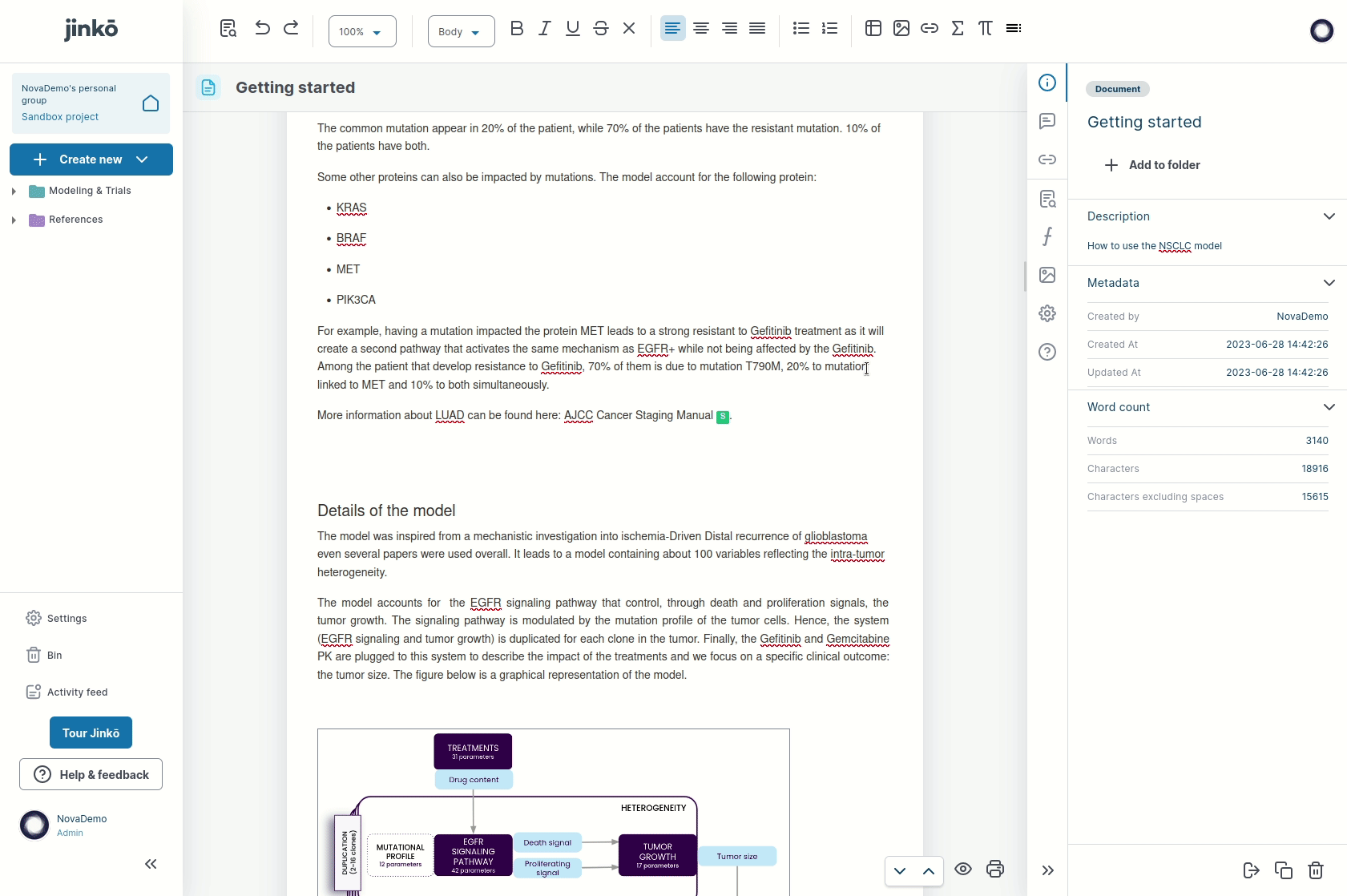 The jinkō platform offers a powerful set of features allowing for the human-curation of scientific knowledge behind a computational model and/or a research project.