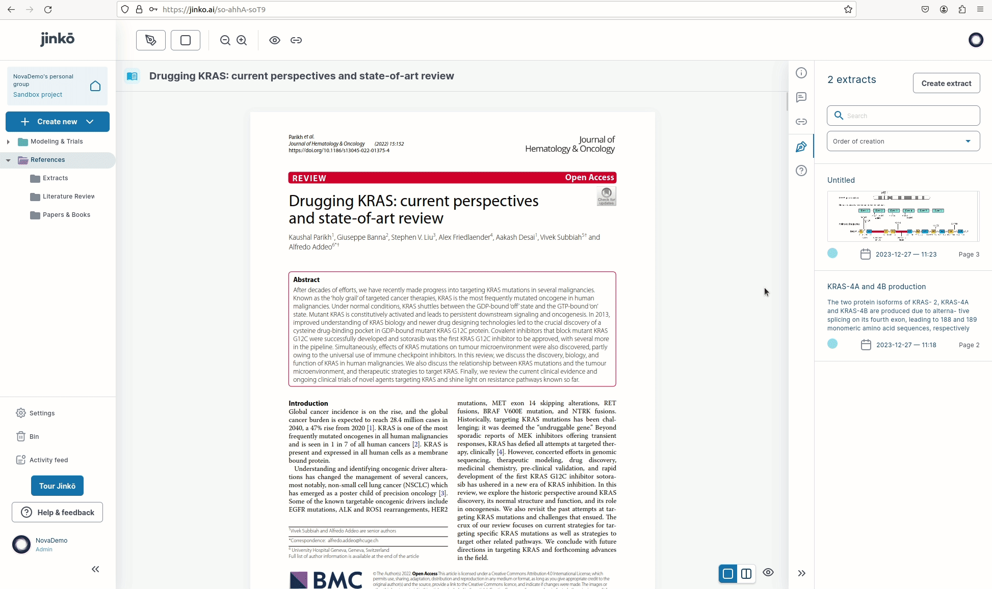 Going back to the PDF of the reference we just uploaded, there are two ways of creating extracts in jinkō: